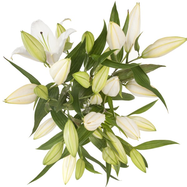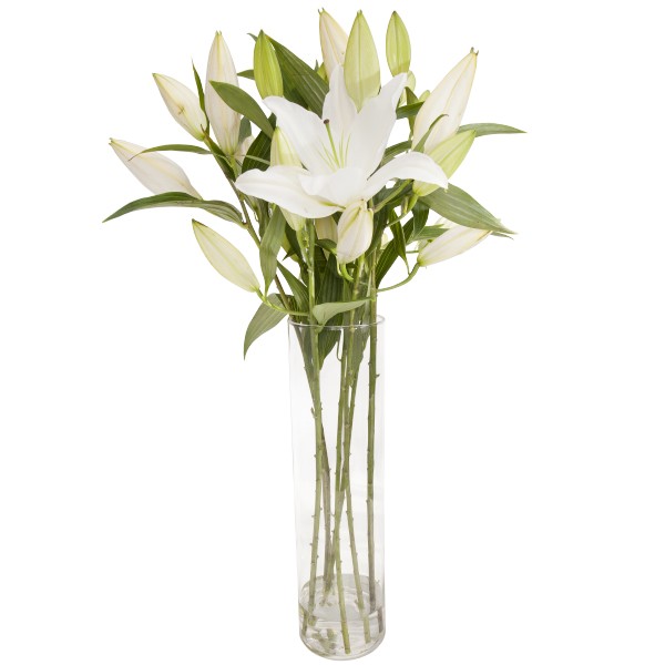 Białe lilie symbolizują niewinność, nadzieje i pożądanie ze względu na ich zmysłowy zapach. Ten czysty, ascetyczny bukiet z 7 długich lilii na pewno zrobi wrażenie na obdarowanej osobie. Do bukietu można dołączyć bilecik z życzeniami.