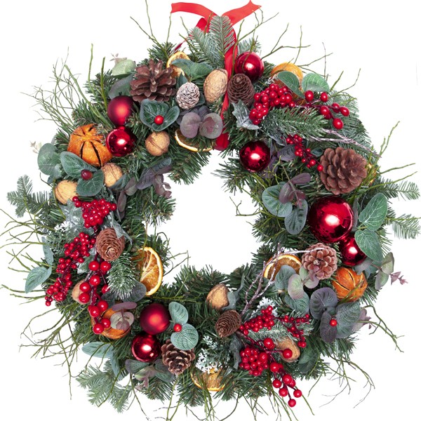 Piękny, bogato zdobiony wianek do powieszenia na ścianę lub drzwi. Wianek ręcznie zrobiony ze sztucznych i naturalnych elementów to prezent na wiele sezonów.Wianek ma średnicę 50 cm. Realizacja w ciągu 3 dni. Do przesyłki dołczamy świąteczny bilecik gratis.
