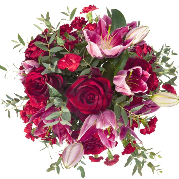 Riche’ to przepiękna, duża wiązanka 15 kwiatów z eukaliptusem. Zmysłowy a jednocześnie lekki zapach tego eleganckiego bukiet zrobi ogromne wrażenie na obdarowanej osobie. Do bukietu możesz dołączyć gratis bilecik z życzeniami.
