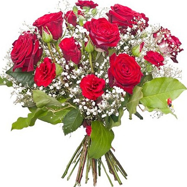 Wyślij ten piękny bukiet z mieszanych czerwonych róż. Bukiet pachnie i mieni się kilkoma odcieniami czerwieni. Delikatności i dodatkowego zapachu dodają białe kwiatki gipsówki.