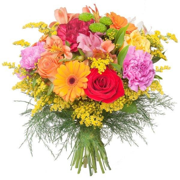 Zamów online fantazyjny, barwny bukiet, który z pewnością ucieszy obdarowaną osobę. Do tego optymistycznego bukietu możesz dołączyć bilecik i przekazać parę miłych słów:-)