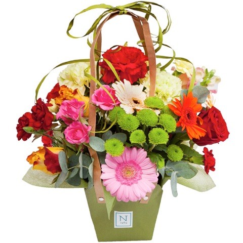 Pokoloruj kwiatami szary dzień bliskiej osobie. Uśmiech i długa trwałość kwiatów gwarantowane. W torebce jest pojemnik z gąbką florystyczną. Torebka kolorowych kwiatów to będzie trafiony prezent. Do torebki możemy gratis dołączyć bilecik, żebyś przekazał życzenia.