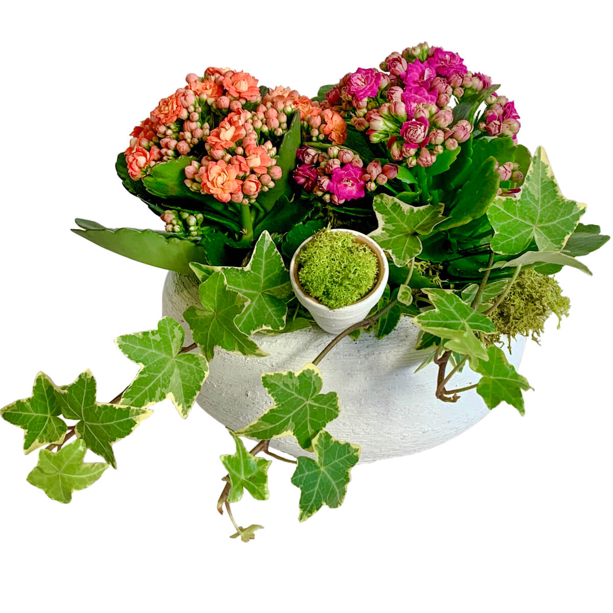 Obdaruj kwiatowym upominkiem bliską Tobie kobietę : Mamę, Żonę, Siostrę, … Kompozycja z kwiatów doniczkowych w ceramicznej misie długo będzie cieszyć oczy obdarowanej Pani.