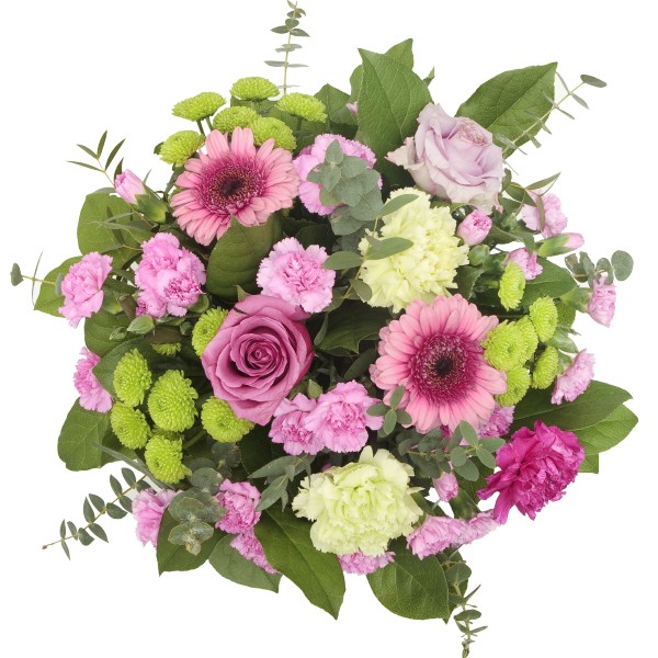 To kompozycja wesołych różowych kwiatów: gerber, goździków oraz letnich zielonych kwiatów. W połączeniu z ciekawymi liśćmi jest doskonałym prezentem dla osoby z poczuciem humoru…