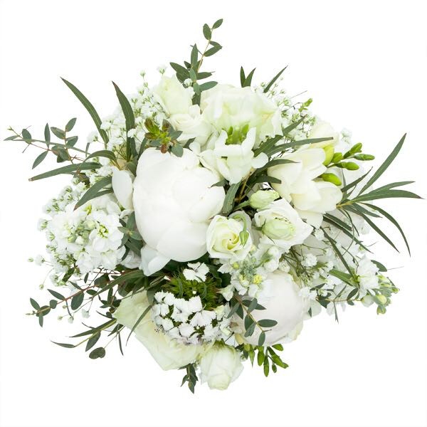 Bukiet, Ślubny biały z eukaliptusem’ Wyślij jako prezent Młodej Parze lub zamów dla przyszłej Panny Młodej. Delikatny, pachnący bukiet z białych kwiatów sezonowych z dodatkiem eukaliptusa. Klasa sama w sobie. Do prezentu możesz dołączyć gratis kartke ślubną z życzeniami.