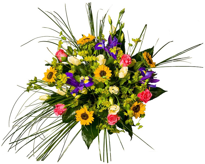 Bukiet w kolorach tęczy to pachnąca, kolorowa wiązanka kwiatów. To kompozycja słoneczników, goździków, róż, irysów i kolorowych kwiatów sezonowych. Osoba obdarowana będzie zachwycona. Irysy mogą zostać zastąpione innymi kwiatami sezonowymi.