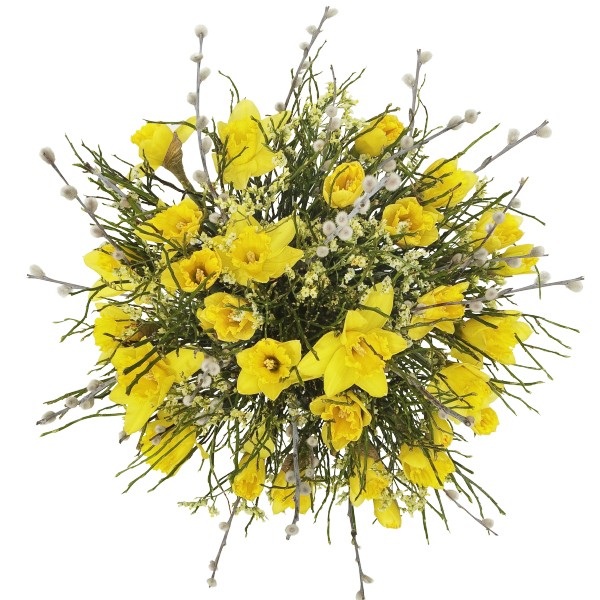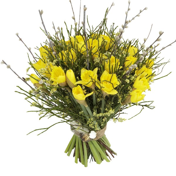 Ten pachnący bukiet z 30 narcyzów oraz wielkanocnego przybrania zachwyci obdarowane osoby.Wyslij bliskim trochę wiosennego słońca. Do bukietu dołącz gratis bilecik z życzeniami.