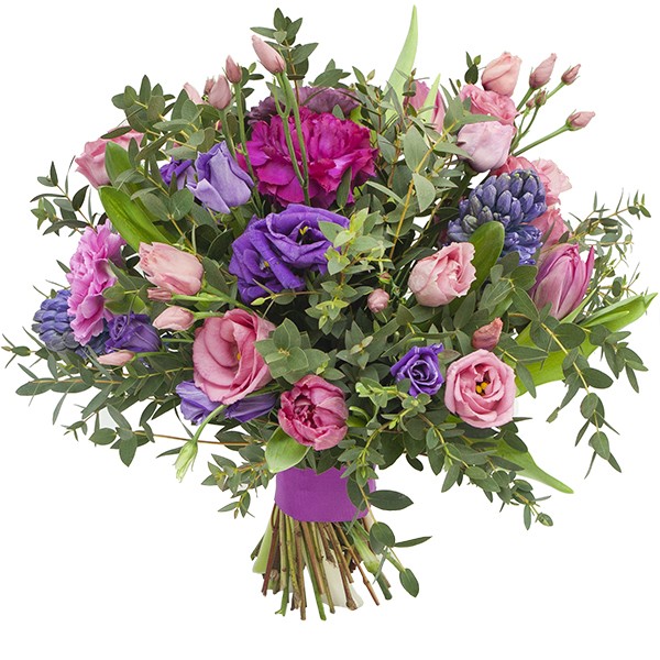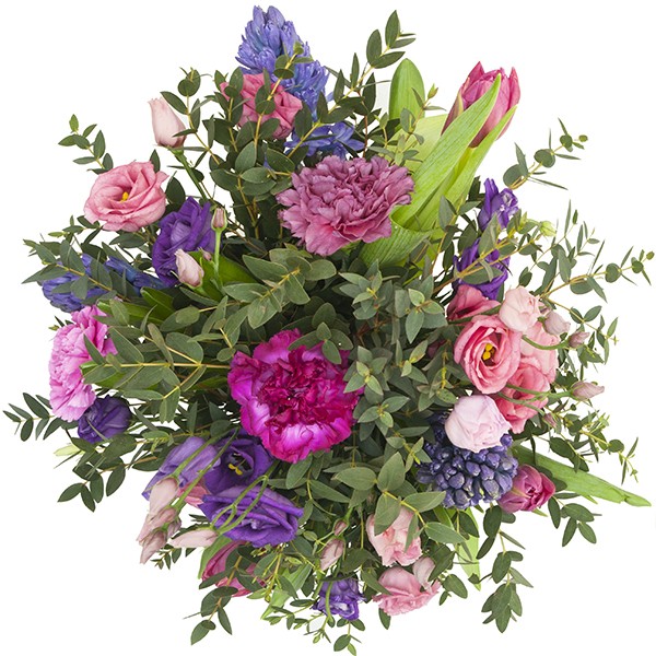 Ten bukiet hiacyntów ,tulipanów, goździków i eustom rozgrzeje zimową atmosferę niosąc subtelny, aksamitny zapach. Zmysłowe zimowe kolory bukietu roztopią niejedno serce. Do bukietu można dołączyć bilecik z życzeniami.