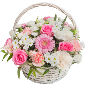 Kompozycja Delikatny kosz to subtelne połączenie sezonowych kwiatów, w różowo-białej tonacji. Wyraź swoje uczucia w finezyjny, a zarazem niebanalny sposób razem z Nami. Spraw by Twoje wybranka poczuła się kochana, doceń jej piękno i podaruj jej kosz kwiatów.
