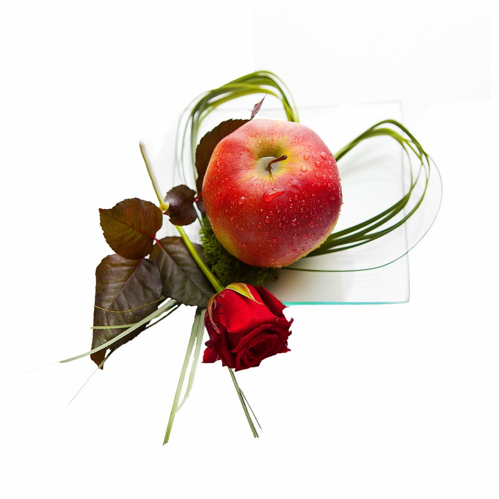Idealna niespodzianka na dzień dobry. Świeże pachnące jabłko z czerwoną różą na szklanym talerzyku podane wprost na biurko 🙂 Do opakowanej kompozycji możesz dołączyć bilecik z życzeniami.