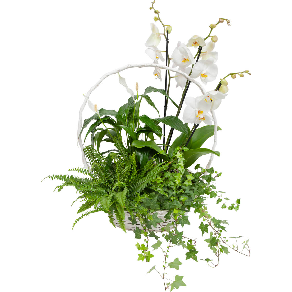 Nasz przepiękny zielono-biały kosz kwiatów doniczkowych jest idealnym by uczcić szczególną okazję i złożyć życzenia lub pogratulować komuś wyjątkowemu. Wyślij ten wspaniały ogromny koszt kwiatów. Zrobisz nie zapomniane wrażenie … Do kosza możesz dołączyć bileciki i napisać parę słów.