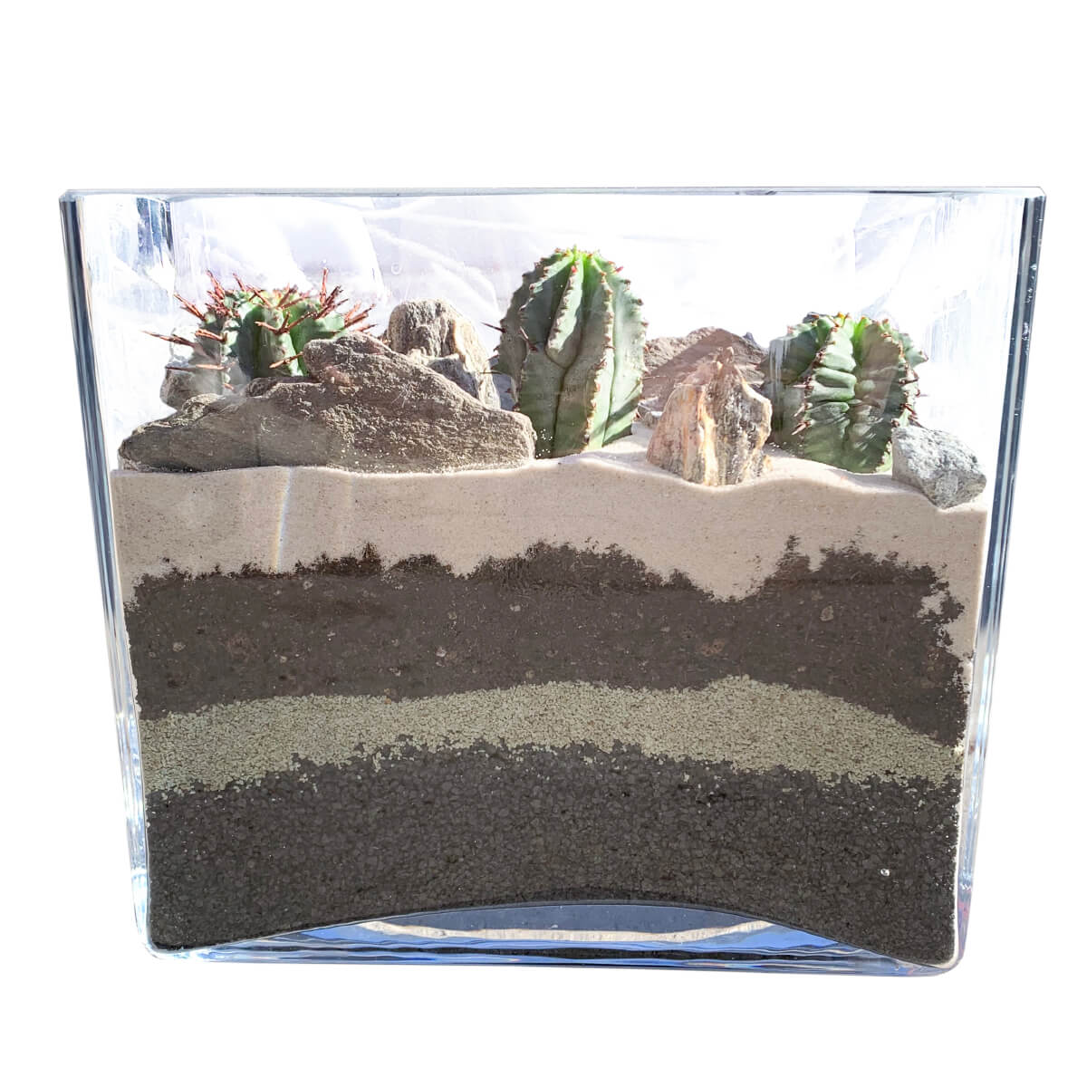 Mała plaża w szkle to najwyższej jakości ozdoba do każdego wnętrza,  gwarantuje atrakcyjny wygląd przez długi okres czasu. Oryginalna kompozycja stworzona ręcznie przez profesjonalne florystki, dzięki temu prezentuje się przepięknie.
