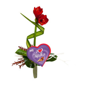Amarylisy z czekoladkami to świetna propozycja dla najbardziej wymagającego klienta. Bukiet przez wiele dni będzie cieszył obdarowaną osobę. Kolor amarylisa można ustalić z florystkami.