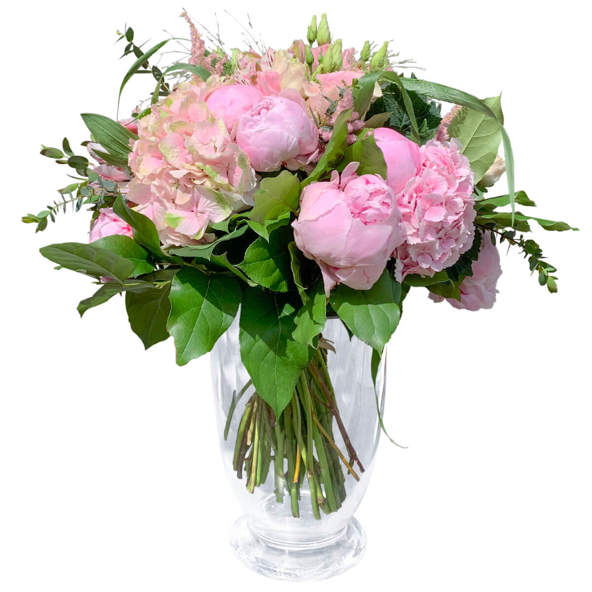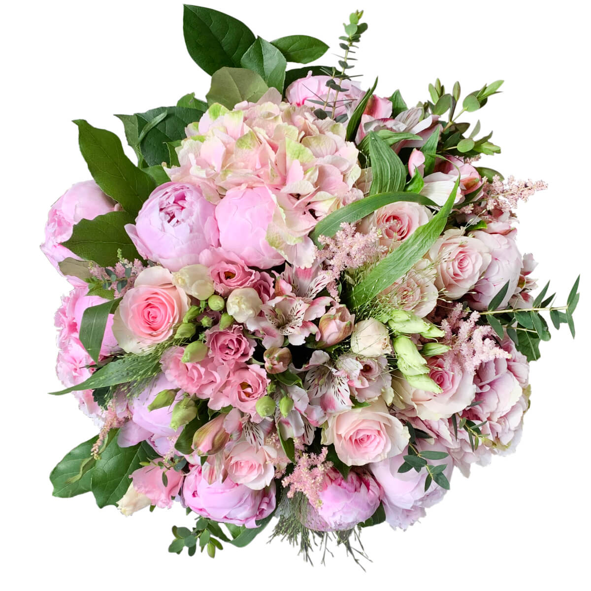 Ten inny niż wszystkie i tak przepiękny bukiet idealny będzie by spełnić te najskrytsze marzenie. Bukiet z sezonowych różowych kwiatów. Na zdjęciu letnia kompozycja a w roli głównej hortensje i piwonie. Zimowa, wiosenna czy jesienna kompozycja również zachwyci swym pięknem nie jedna kobietę. Do bukietu możesz dołączyć bilecik, aby przekazać życzenia.