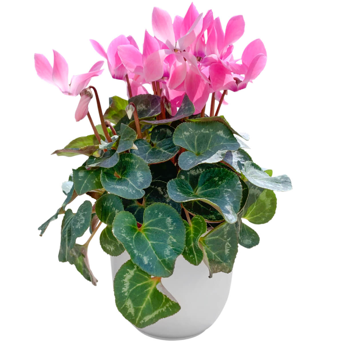 Wyślij pięknego Cyklamena Perskiego. Różowy cyklamen w donicy został elegancko skomponowany z dekoracją. Będzie przez długie dni kwitł, ożywi wnętrze i wprowadzi odrobinę optymizmu do każdego domu, biura.