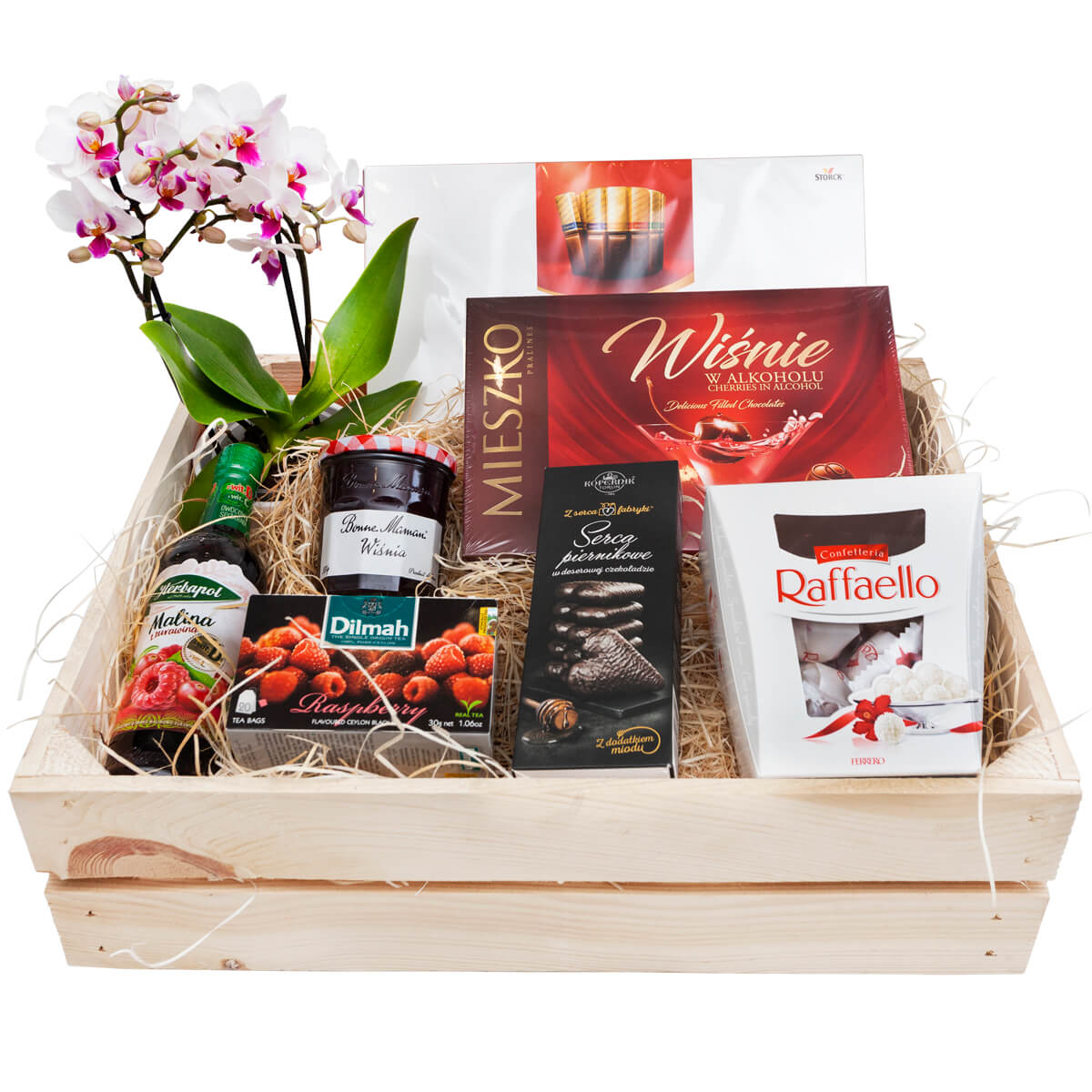 Szukasz idealnego prezentu dla Mamy? Babci? A może ktoś z Twoich bliskich ma urodziny lub imieniny? Zamów i wyślij idealny prezent dla bliskiej Ci osoby – Skrzynka z wyselekcjonowanymi słodyczami, syropem czy marmoladą a do tego przepiękny storczyk?
