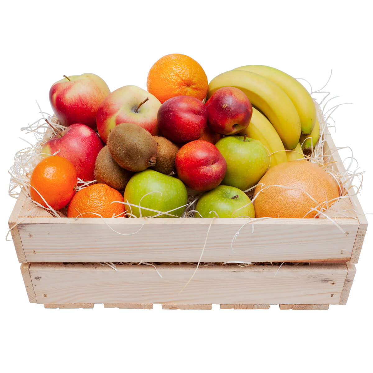 Owocowa skrzynka, która z pewnością przyda się wszystkim w domach. W drewnianej skrzynce będzie można znaleźć soczyste jabłka, pełne witamin nektarynki lub cytryny, zielone kiwi, żółte banany, pomarańczę oraz grejpfruta.