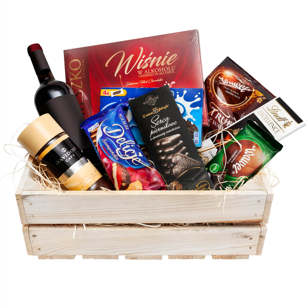 Szukasz idealnego prezentu dla Taty? Dziadka? A może ktoś z Twoich bliskich ma urodziny lub imieniny? Zamów i wyślij idealny prezent dla bliskiej Ci osoby – Skrzynka z wyselekcjonowanymi słodyczami, kawą oraz winem bezalkoholowym/oliwą z oliwek lub syropem.